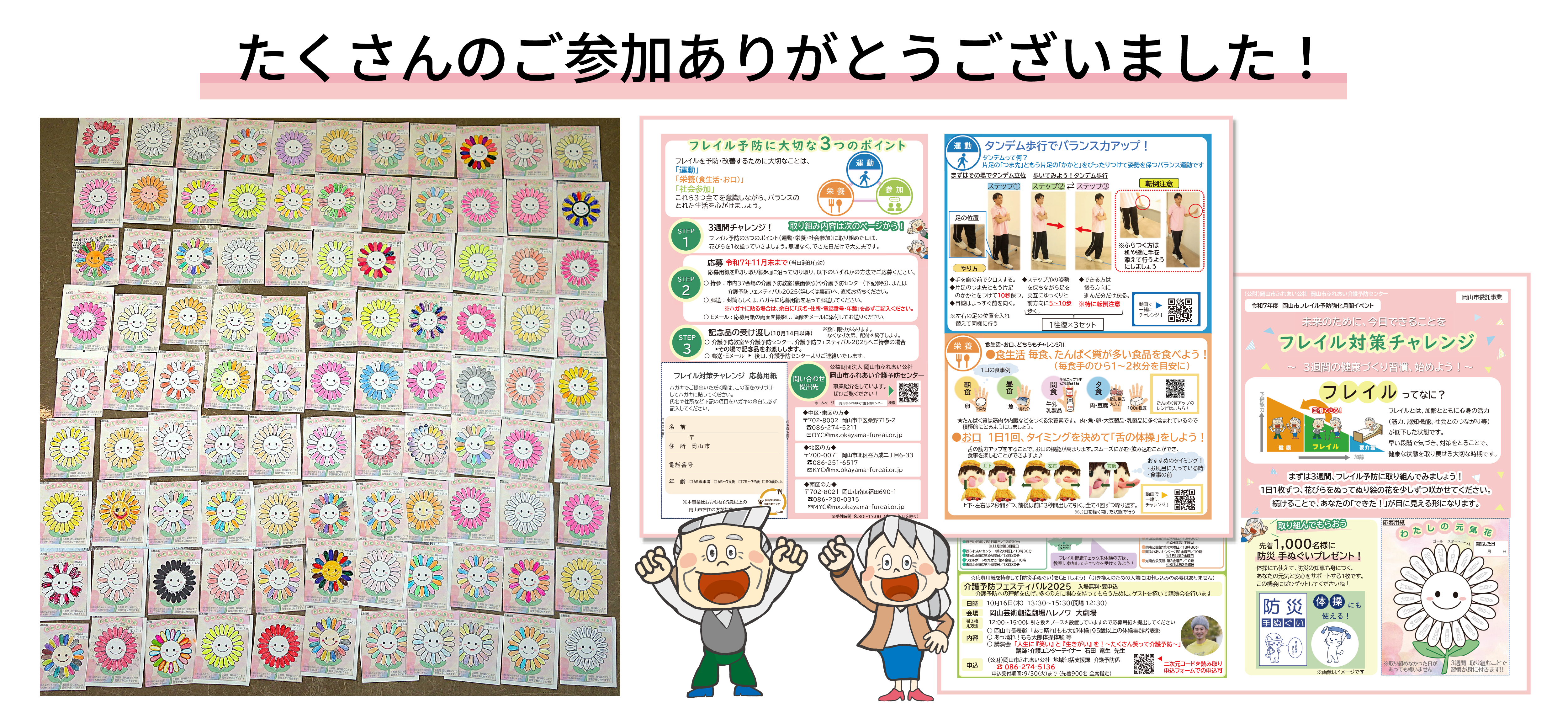 岡山市では、毎年9月21日から10月21日までの1カ月間を「フレイル予防強化月間」と定めています。今年も、ご自身やご家族の健康状態に目を向け、できるだけ早い段階から適切な取組みにつながるよう、さまざまなイベントを実施しました。