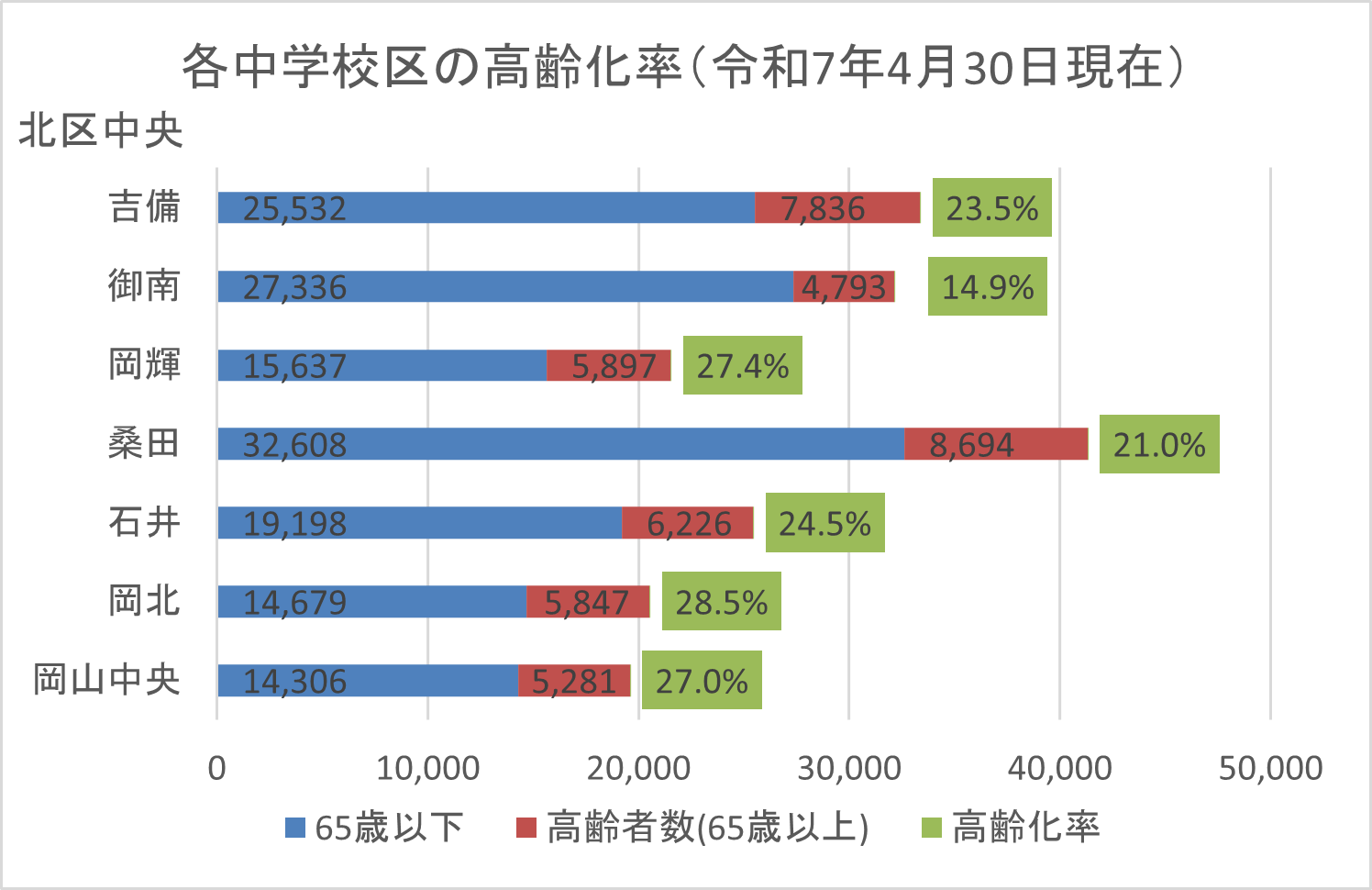 | 中学校区 | 岡山中央 | 岡北 | 石井 | 桑田 | 岡輝 | 御南 | 吉備 |