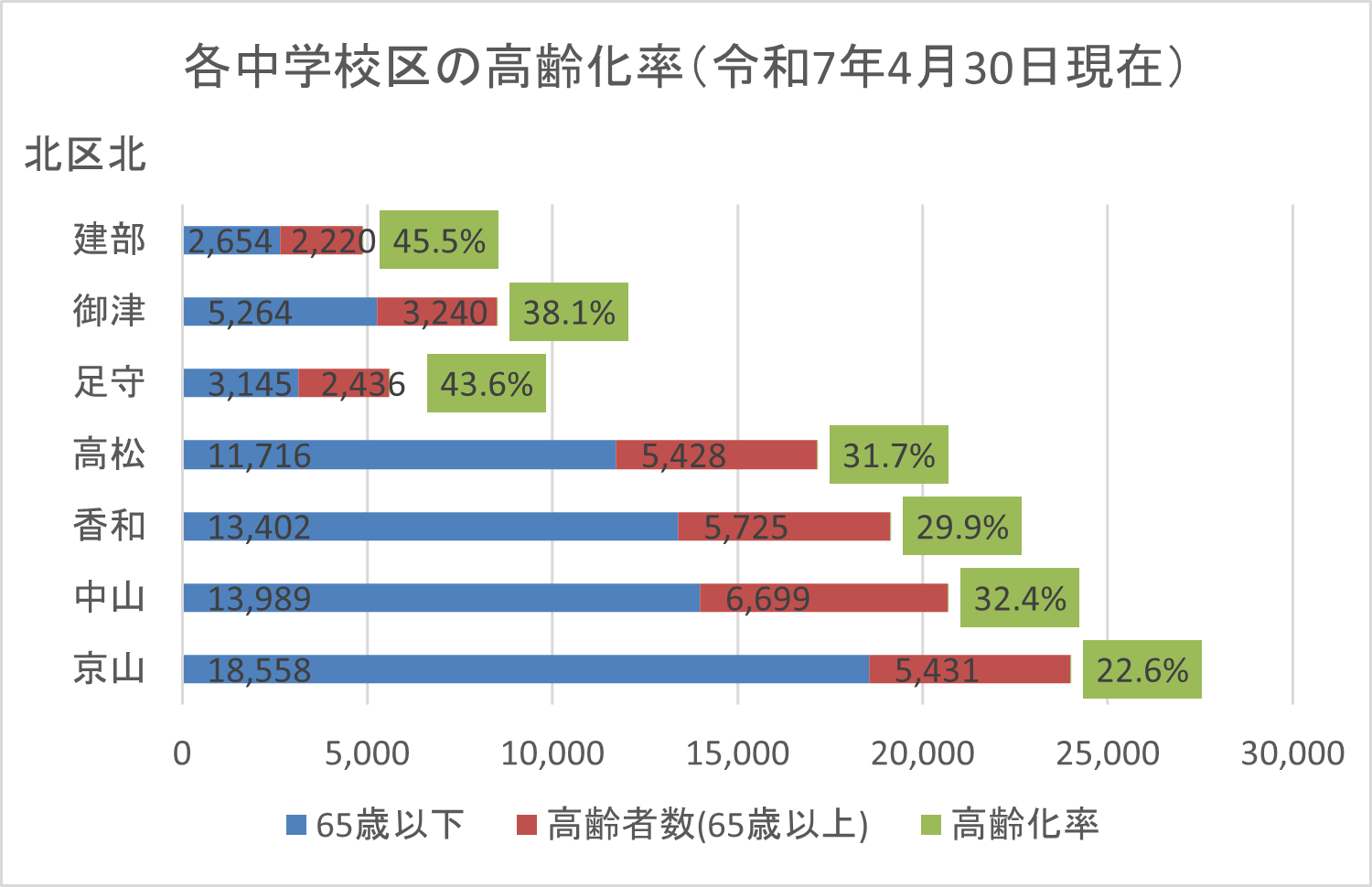 | 中学校区 | 京山 | 中山 | 香和 | 高松 | 足守 | 御津 | 建部 |