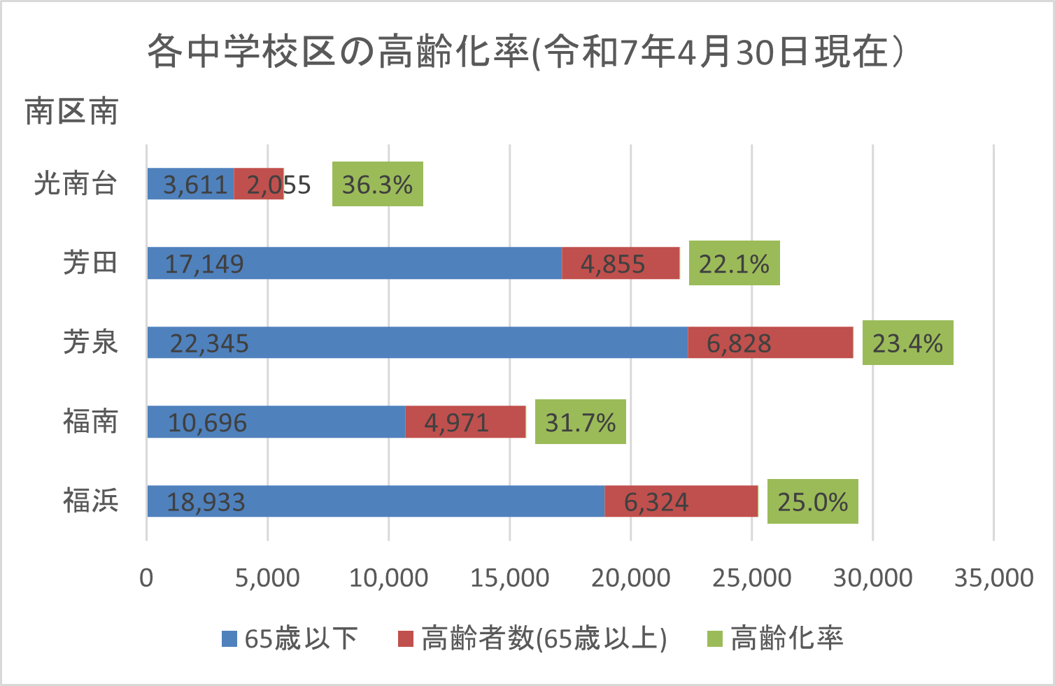 | 中学校区 | 福浜 | 福南 | 芳泉 | 芳田 | 光南台 |