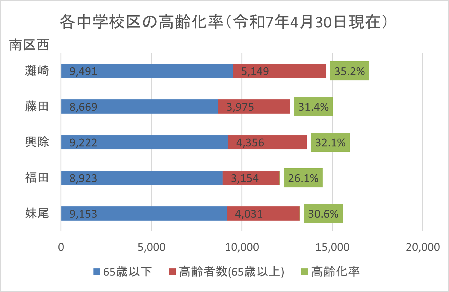 | 高齢者数(人) | 7,711 | 2,163 | 6,400 | 3,091 | 5,129 | 4,513 |