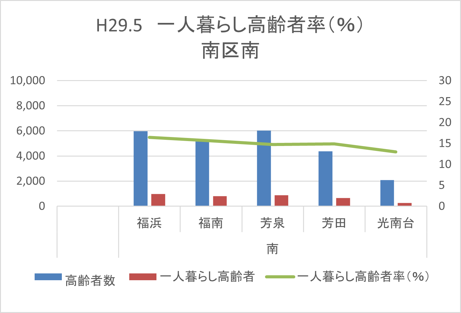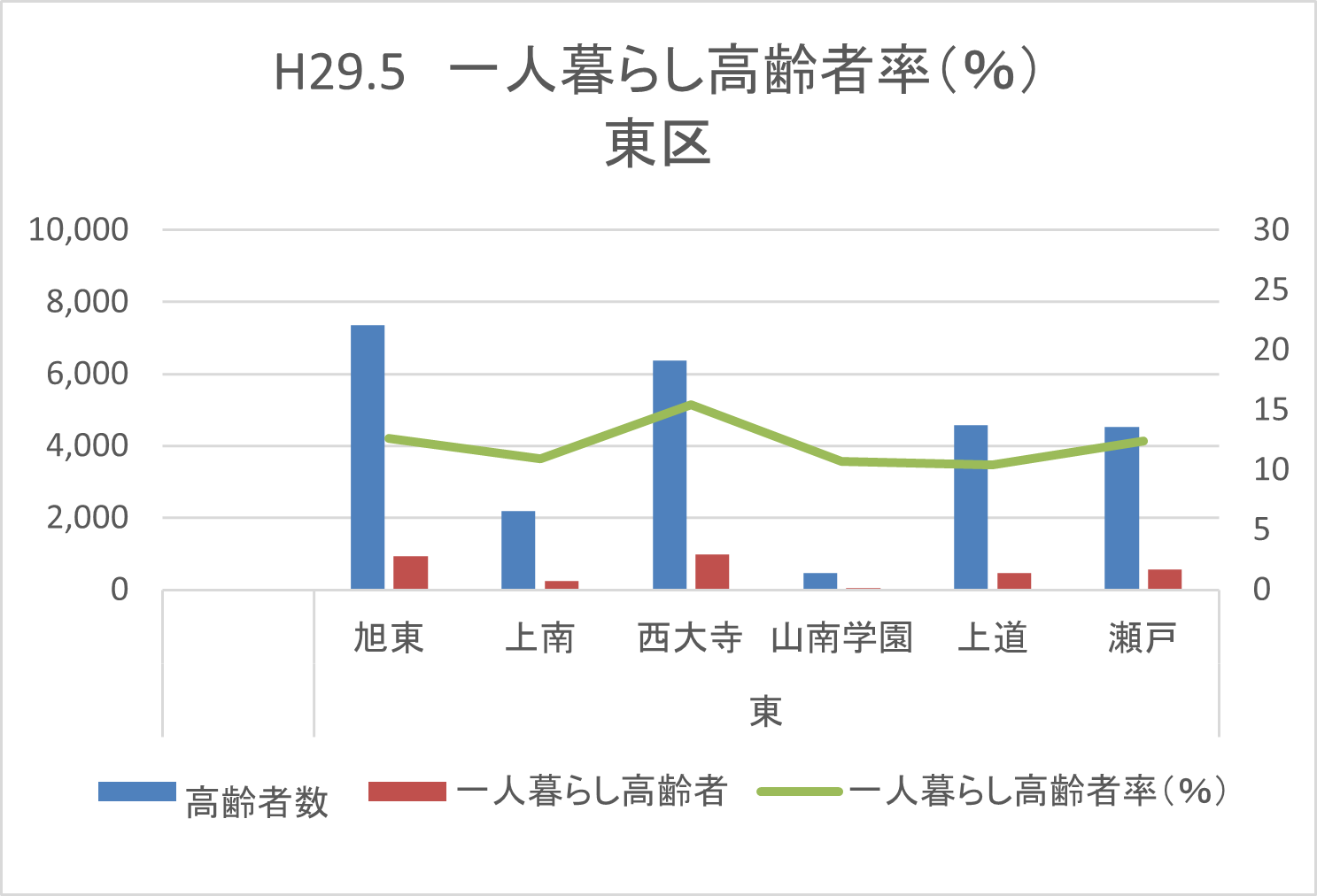 | 一人暮らし高齢者率(%) | 12.7 | 10.9 | 15.4 | 10.7 | 10.4 | 12.4 |