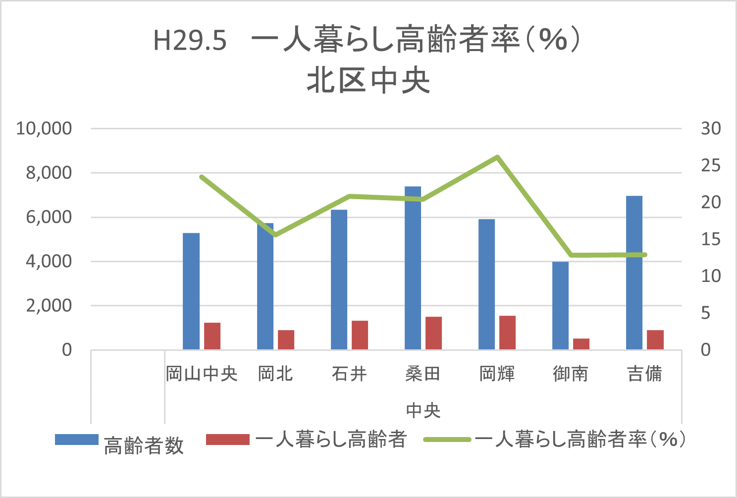 (補足2)一人暮らし高齢者率は、平成29年5月1日現在の実数調査によるもので、岡山市全体の平均は15.1%です。