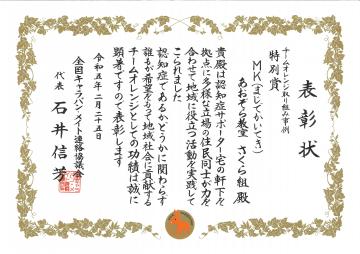 チームオレンジ取り組み事例特別賞表彰状