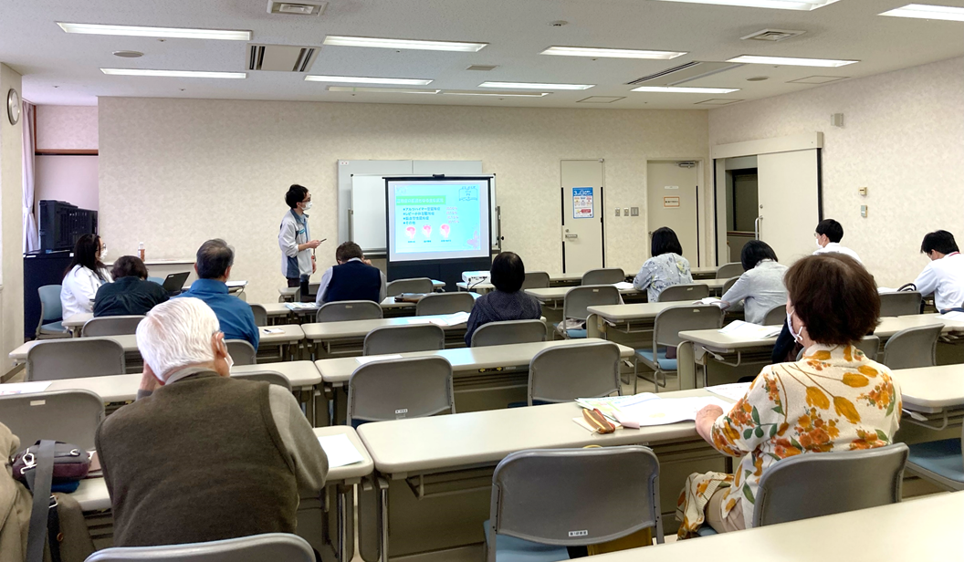 認知症の正しい知識や理解を深めていただき、認知症の人やその家族を地域で支える「認知症サポーター」になっていただく講座です。テキストや資料などを用いて「認知症サポーターとは」「認知症とは」「認知症の方との接し方」などについて学んでいただきます。