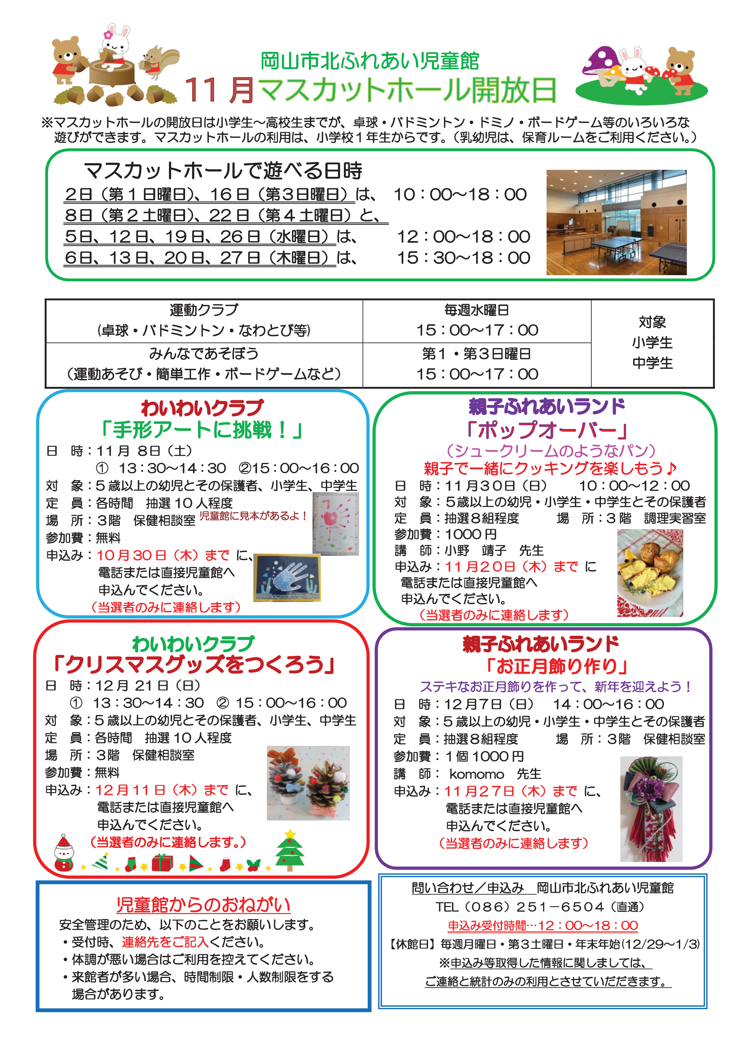 申込方法:電話、または直接児童館に来館し、申し込みください。