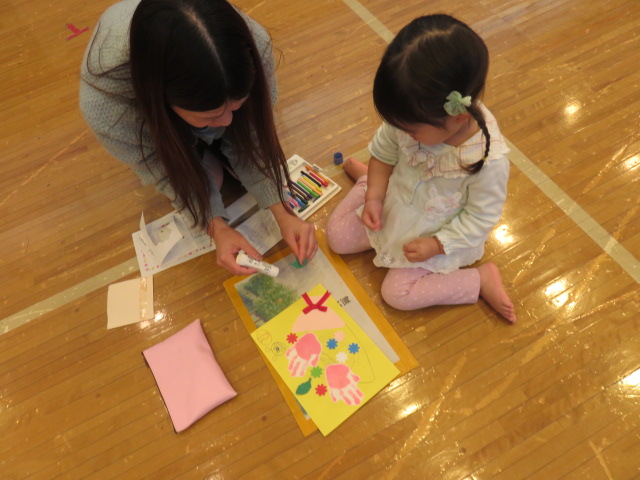 おおきくなったねカードを作ったり、「はたらくくるま」のペープサートを見たりして楽しみました。