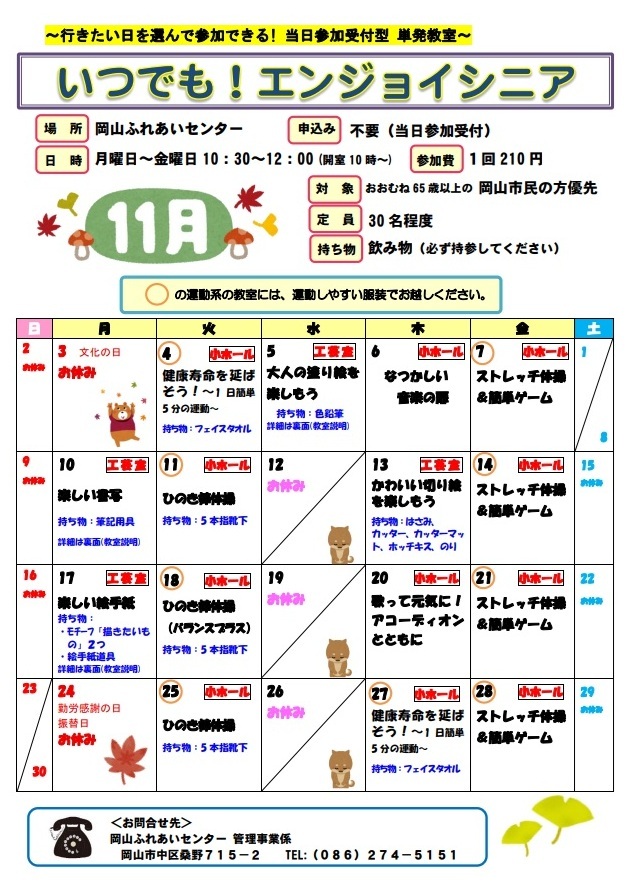 Eメール: o-kouza@mx.okayama-fureai.or.jp