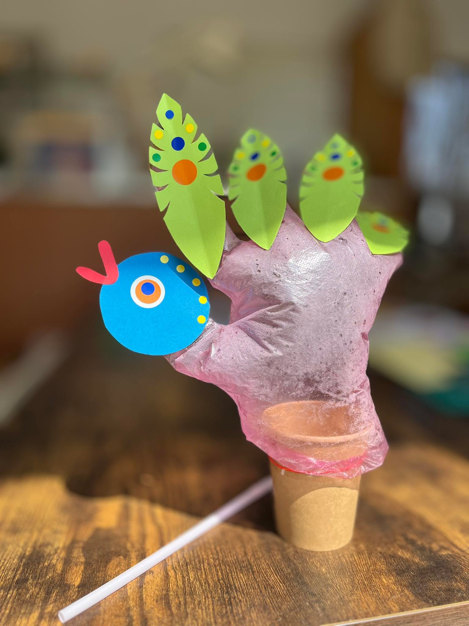 「アロマスマイルちゃん」「キラキラボトル」「ビニール手袋で作る鳥さん」の3種類から選んで作れる、わくわく工作コーナーです。
