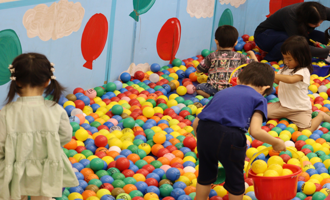 ボールのプールの中で思いっきりからだを動かしてあそびましょう。