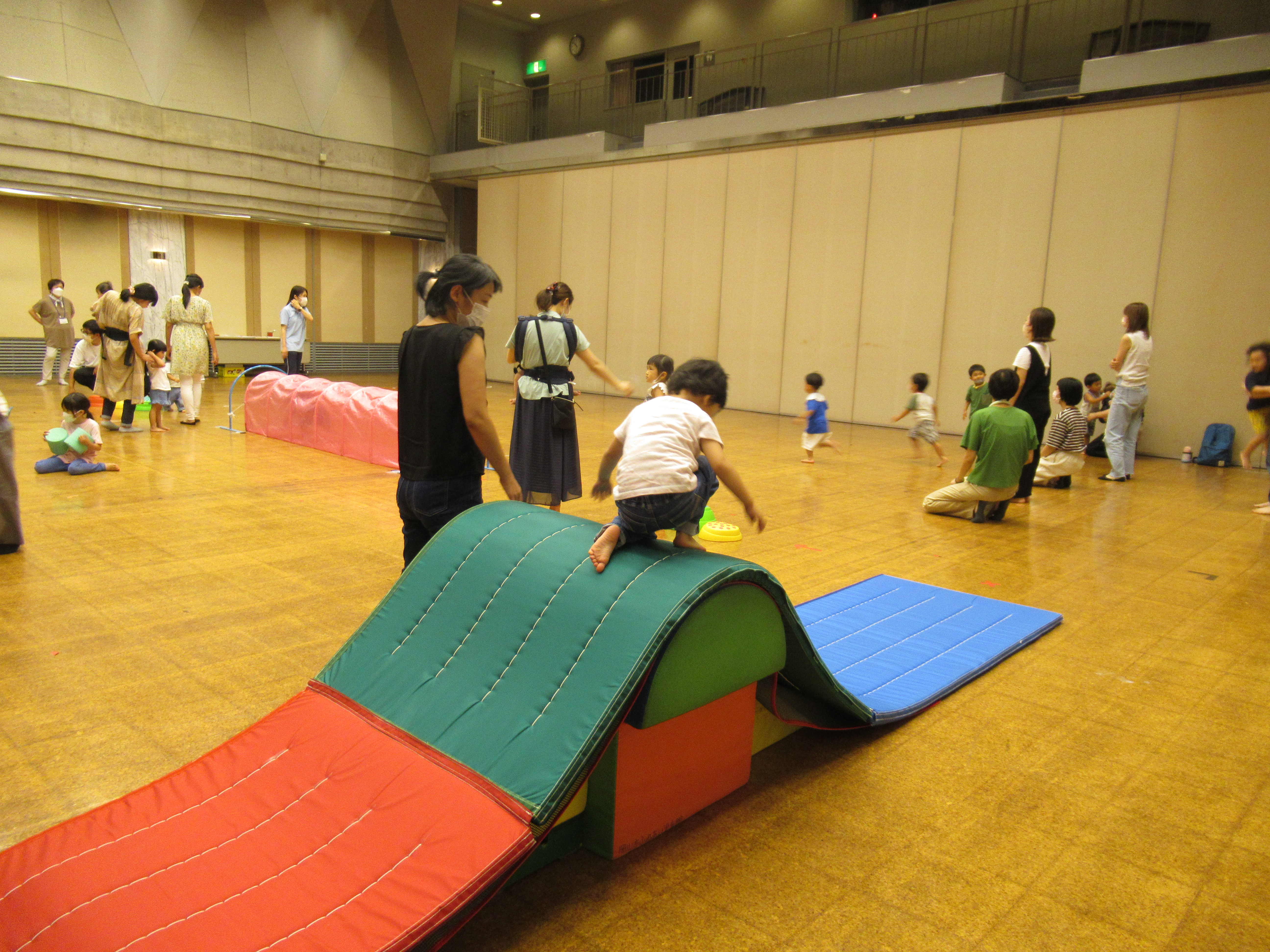 幼児から小学生までが遊べるような、マット山やトンネルなど、いろいろな遊びを用意しています。