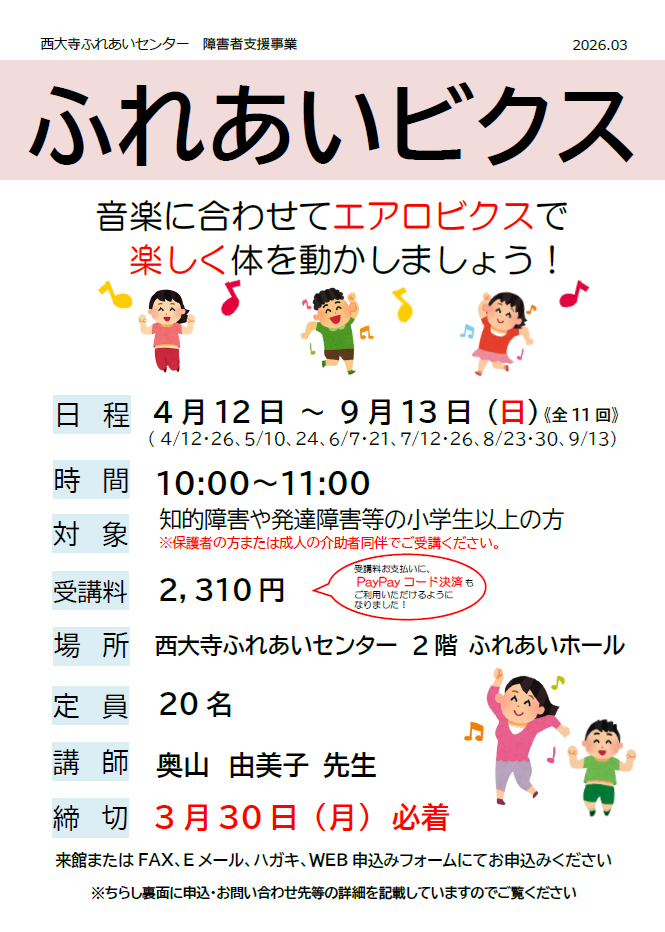 音楽に合わせてエアロビクスで、楽しく体を動かしましょう!