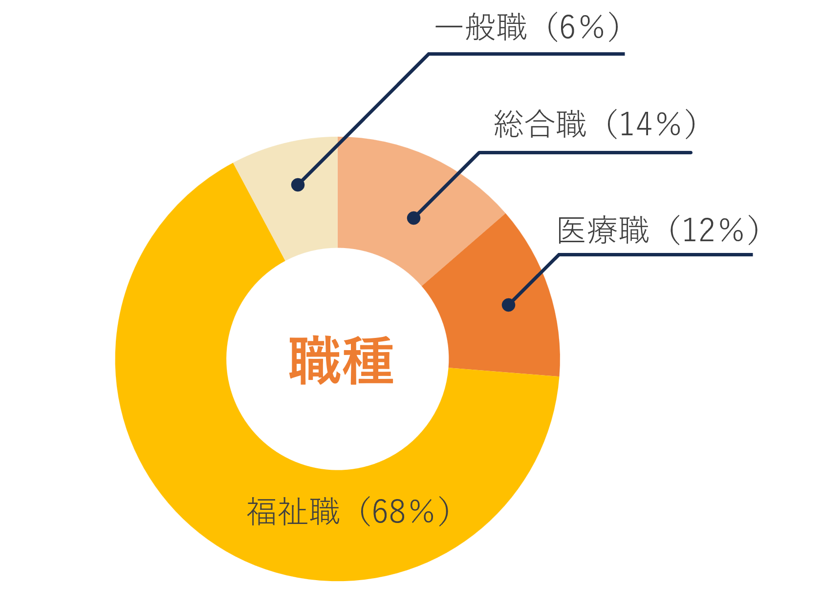 財団における正規職員の職員構成は、現場職員となる医療職・福祉職の専門職がその大半を占めており、総合職の職員割合は14%となっています。