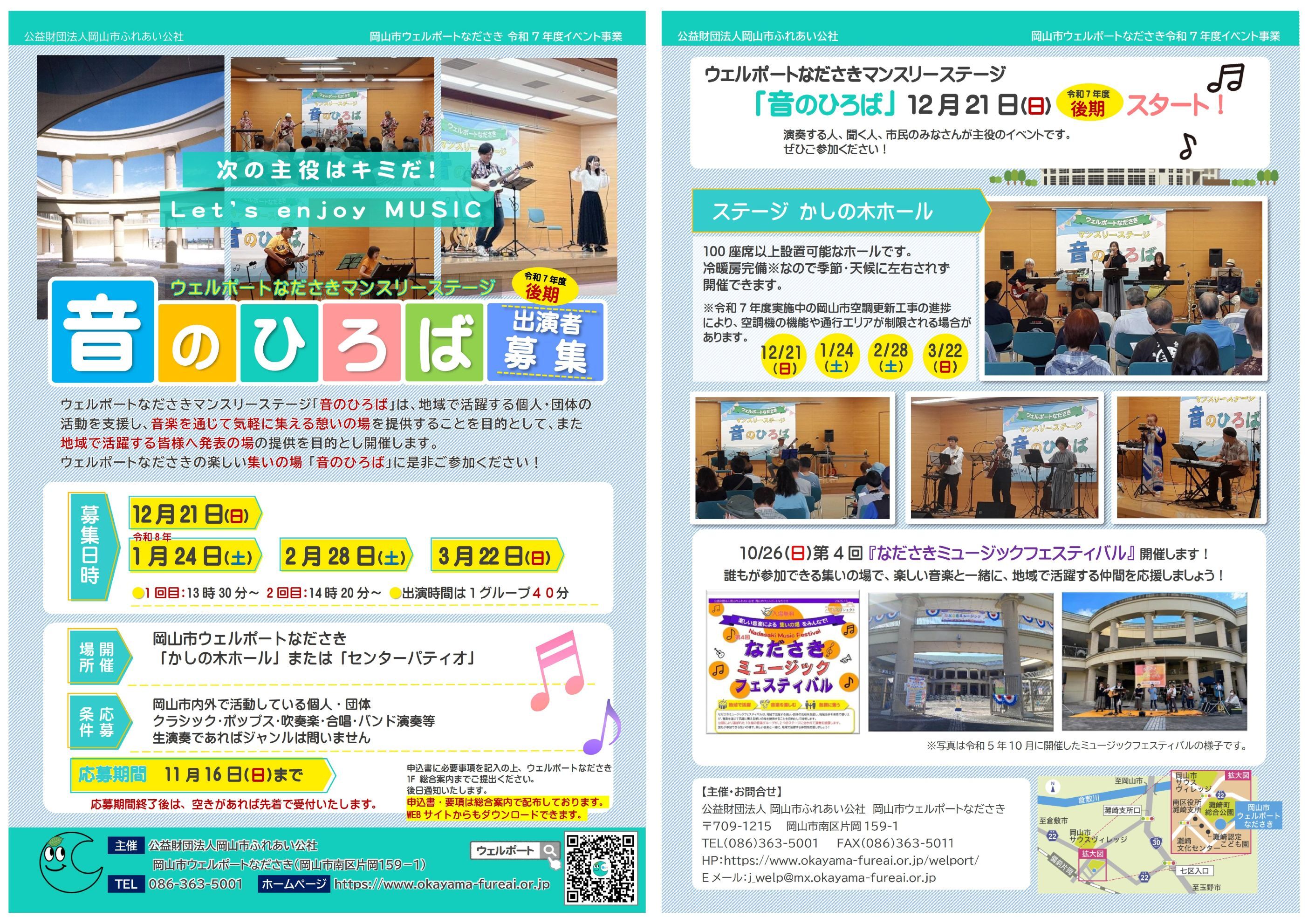 マンスリーステージ「音のひろば」2025年度 後期を、12月21日日曜日からスタートします!(12月から3月まで、全4回)